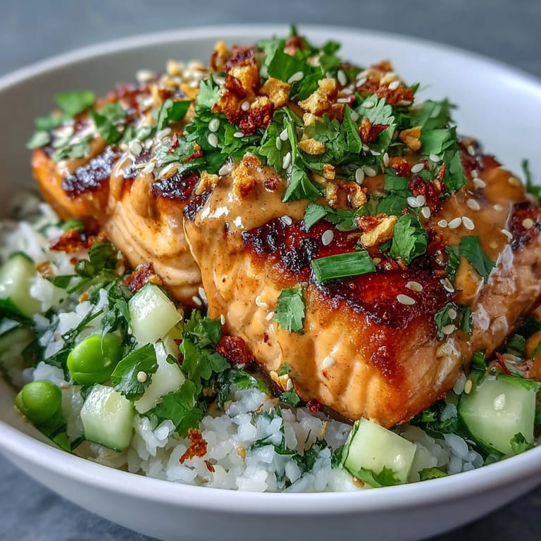 Save My roommate came home one evening complaining about bland meal prep, and I had this sudden urge to prove that healthy eating didn't have to taste like cardboard. I started layering jasmine rice with whatever looked good in the fridge—edamame, cucumber, fresh herbs—and then whisked together this ridiculously creamy, spicy sauce that made everything snap to attention. One bite and she stopped mid-complaint, fork suspended in air, asking what sorcery had happened to salmon. That's when I realized this bowl had become my secret weapon for turning ordinary weeknights into something worth looking forward to.