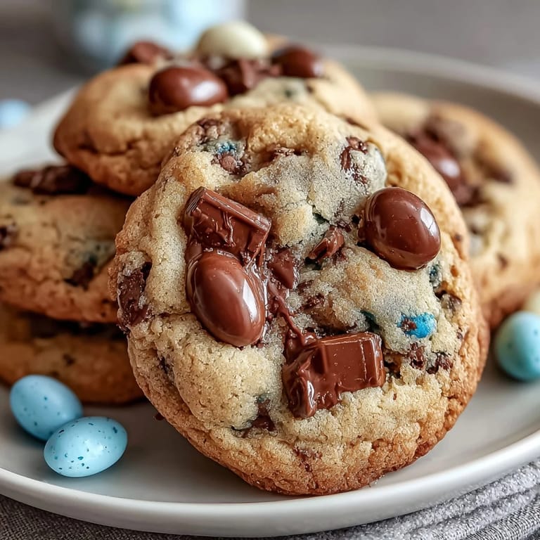 These aren't the kind of cookies that sit politely in a tin waiting to be eaten; they're the kind people grab while walking past the kitchen, the kind that disappear before you've even finished cooling the second batch. My husband has a habit of eating one warm from the rack while reading the news, my kids sneak them for breakfast, and somehow I always end up with exactly zero by bedtime. The combination of textures—the crispy edge meeting the chewy center, the snap of Mini Egg shells against soft chocolate—creates something utterly craveable.