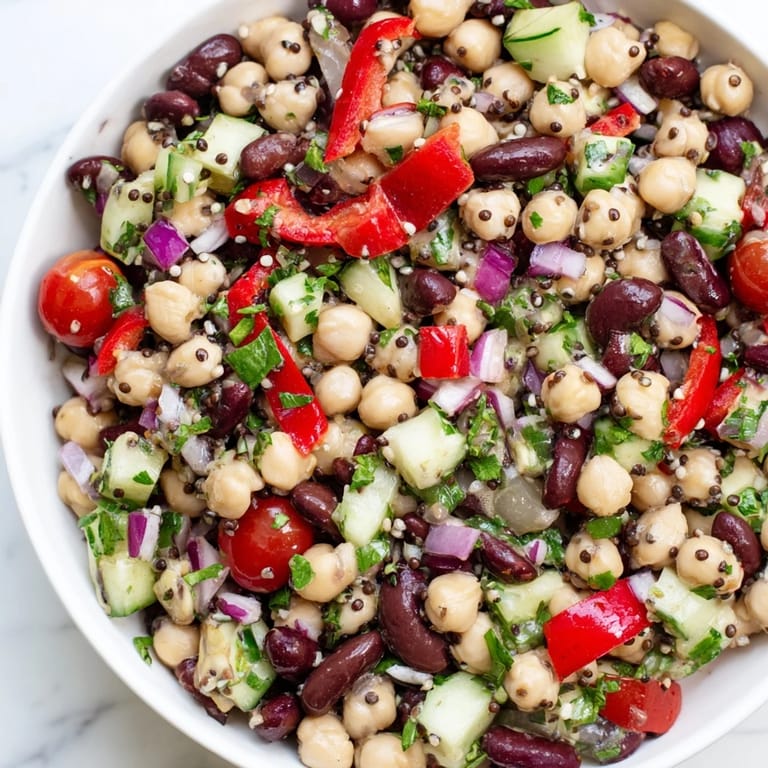 - Chickpeas, kidney beans, and black beans: The foundation of the salad, they bring protein and a satisfying chew that makes this more than a side dish.
