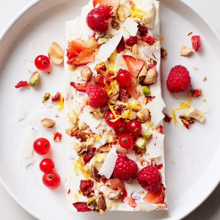 - β What toppings complement the frozen yogurt bark?