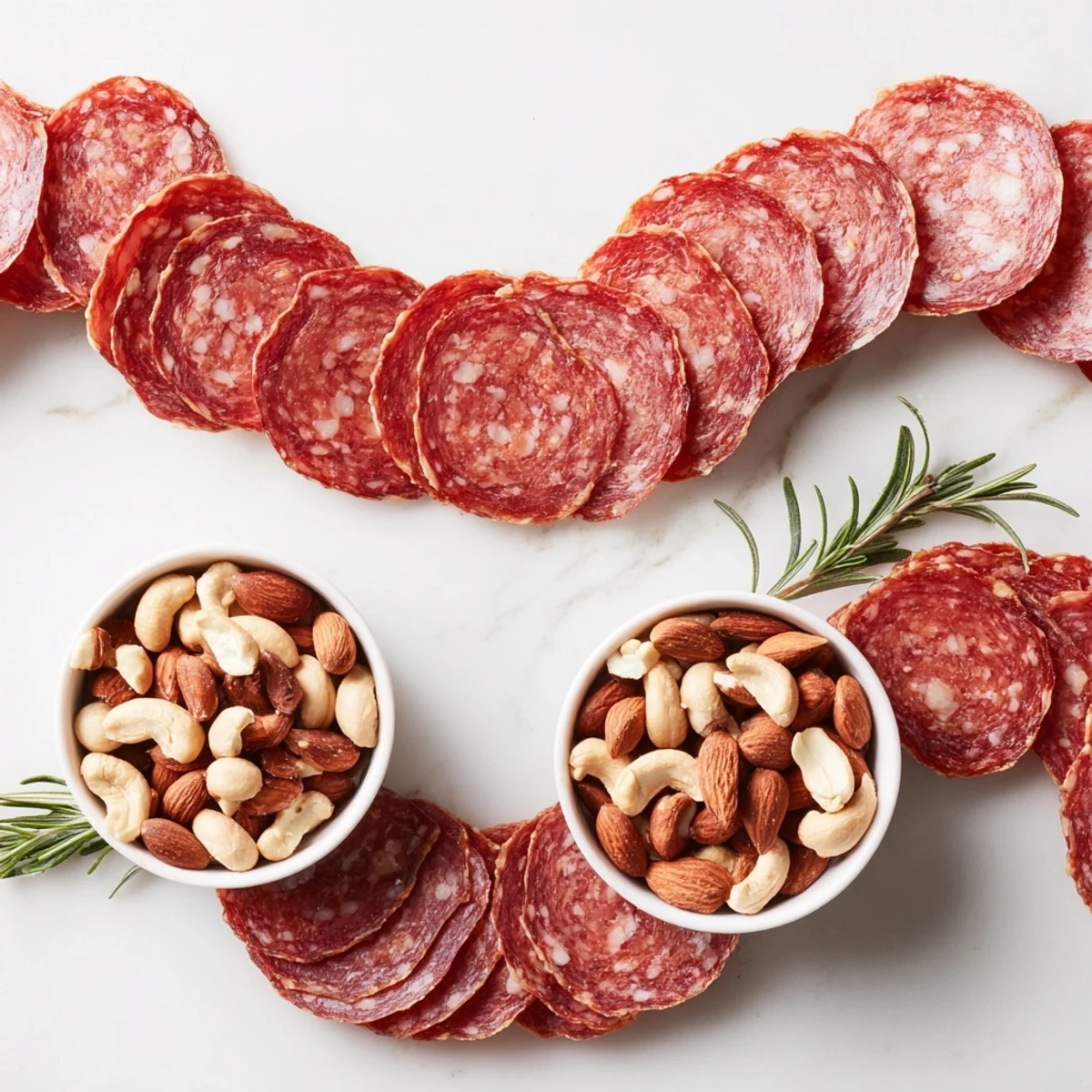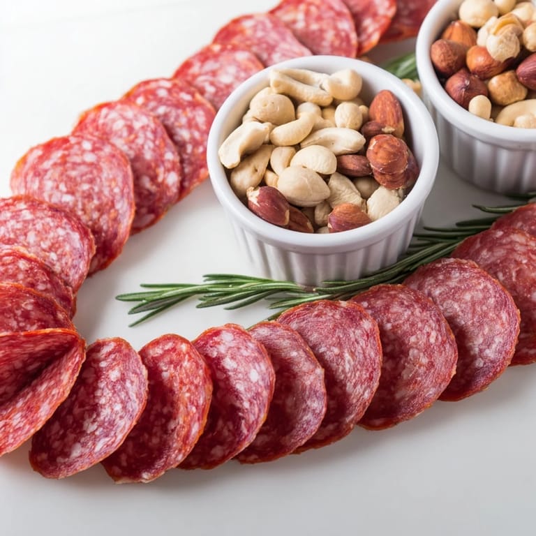 - Crackers or breadsticks (optional): These give guests another texture to play with, though the salami and nuts are complete on their own.