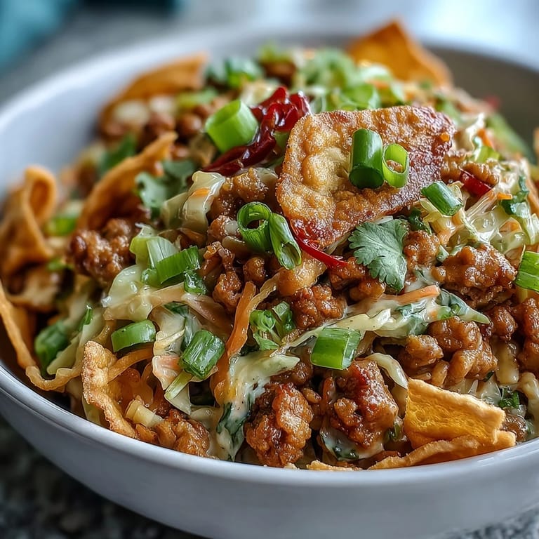 Save My kitchen smelled like sesame oil and ginger the night my neighbor stopped by asking what was for dinner, and I had nothing planned except a pound of ground turkey sitting in the fridge. Something clicked—why not deconstruct an egg roll, skip the wrapper, and let all those bright, crispy components shine on their own? Thirty minutes later, we were eating straight from bowls, talking with our mouths full, the crunch of wonton strips mixing with the heat of sriracha and cool ranch seasoning. It felt like cheating, making something feel fancy and restaurant-worthy when really it was just ingredient chaos organized into something beautiful.