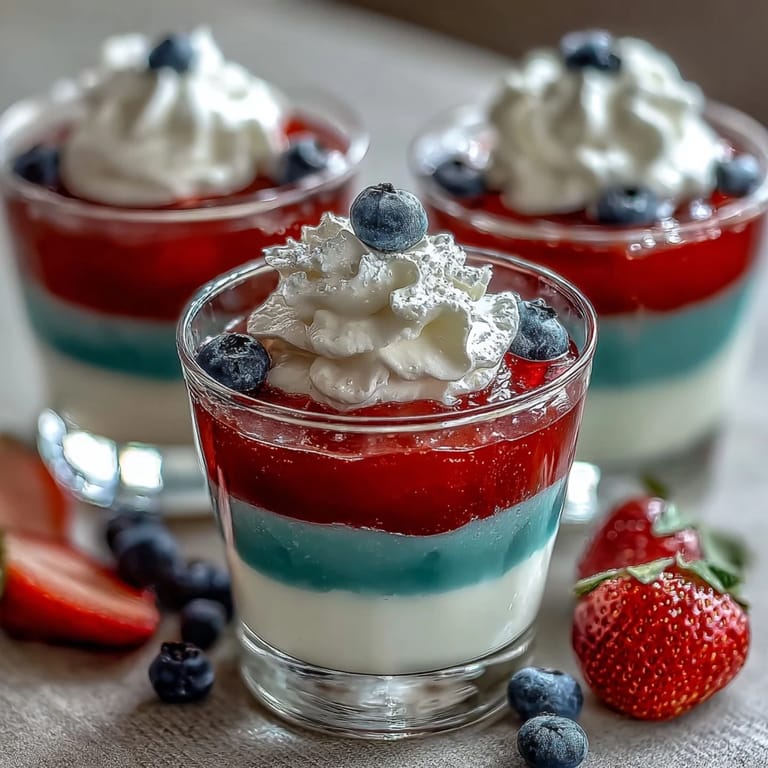 Save My neighbor showed up to a Fourth of July potluck with these stunning layered jello cups last summer, and I couldn't stop staring at them—the way the ruby red caught the afternoon light, how the creamy white middle looked almost like clouds, and that electric blue peeking through. She caught me admiring them and laughed, saying they were easier than they looked and that I absolutely had to make them myself. The first time I tried, I was nervous about the layers staying separate, but once I realized the trick was patience and proper cooling, I became obsessed with the whole process.