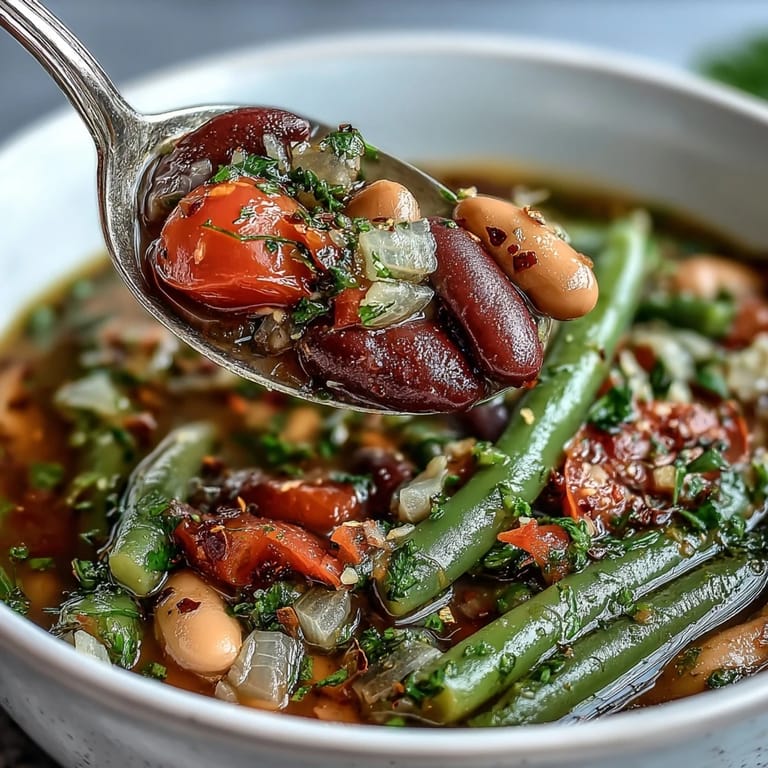 Save The idea for my three-bean salad soup struck on a rainy spring afternoon when I was staring at the last bits of my farmers market haul. I had three types of beans that needed using and a craving for something both comforting and fresh. The kitchen windows steamed up as I experimented, transforming the bright vinegary notes of a picnic salad into something that would warm us from the inside. The aroma of sautéing vegetables and herbs filled our small apartment, drawing my partner in from the other room with curious eyes.
