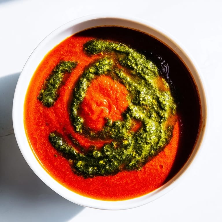 I made this for a friend who stopped by unexpectedly one rainy afternoon. We sat at the kitchen table with steaming bowls and crusty bread, and she kept dragging her spoon through the pesto swirl, watching the green ribbons twist into the red. She didn't say much, but she asked for the recipe before she left. That's when I knew this one was a keeper.