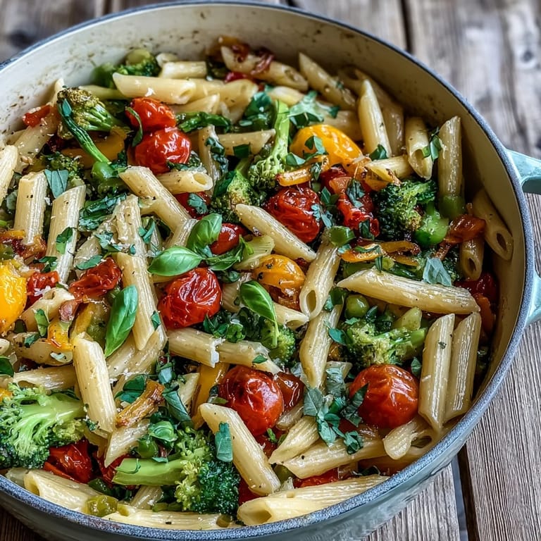Save My friend showed up at my apartment on a Tuesday evening with a bag of farmers market vegetables and zero plans for dinner. We stood in my tiny kitchen staring at zucchini, bell peppers, and cherry tomatoes, and I suddenly remembered a one-pot pasta trick I'd read somewhere—just throw everything in together and let it cook. What happened next was pure magic: the pasta absorbed all that bright, vegetal broth while lemon juice made everything sing. Now whenever I need dinner fast and want people to feel genuinely cared for, this is what I make.