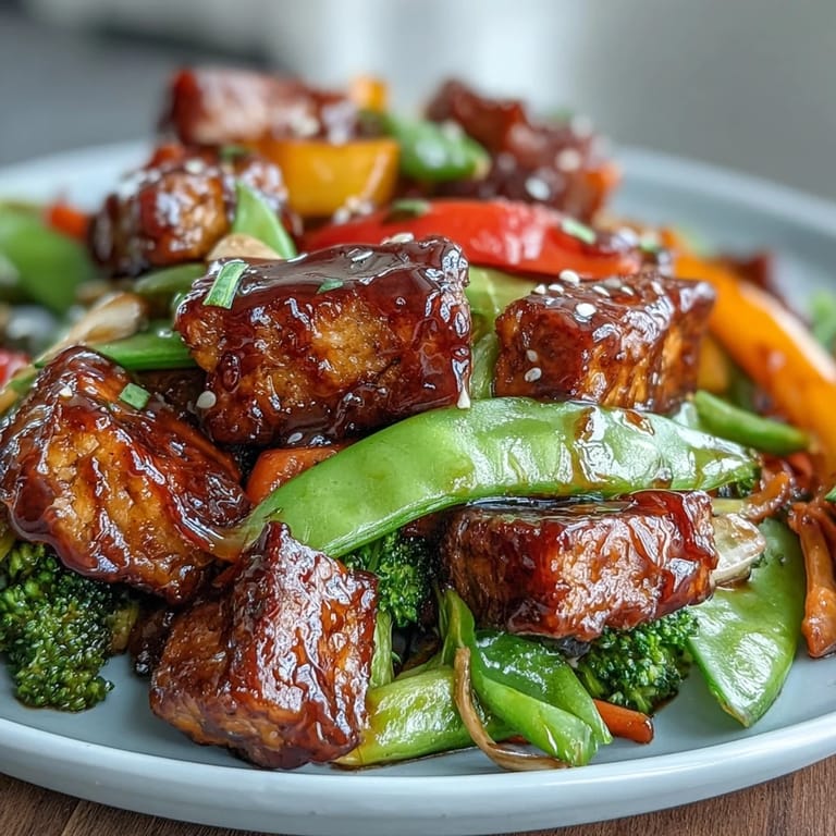 Save There's a particular moment in my kitchen when everything clicks into place, and this tempeh stir-fry is exactly that. I discovered it one Tuesday evening when I was tired of the same rotation, standing in front of my open fridge with half a block of tempeh and whatever vegetables hadn't wilted yet. The sizzle that followed, the way the golden tempeh cubes caught the light, the aroma of ginger and garlic filling the small space—it felt less like cooking and more like solving a delicious puzzle. That night taught me that sometimes the best meals come from improvisation rather than planning.